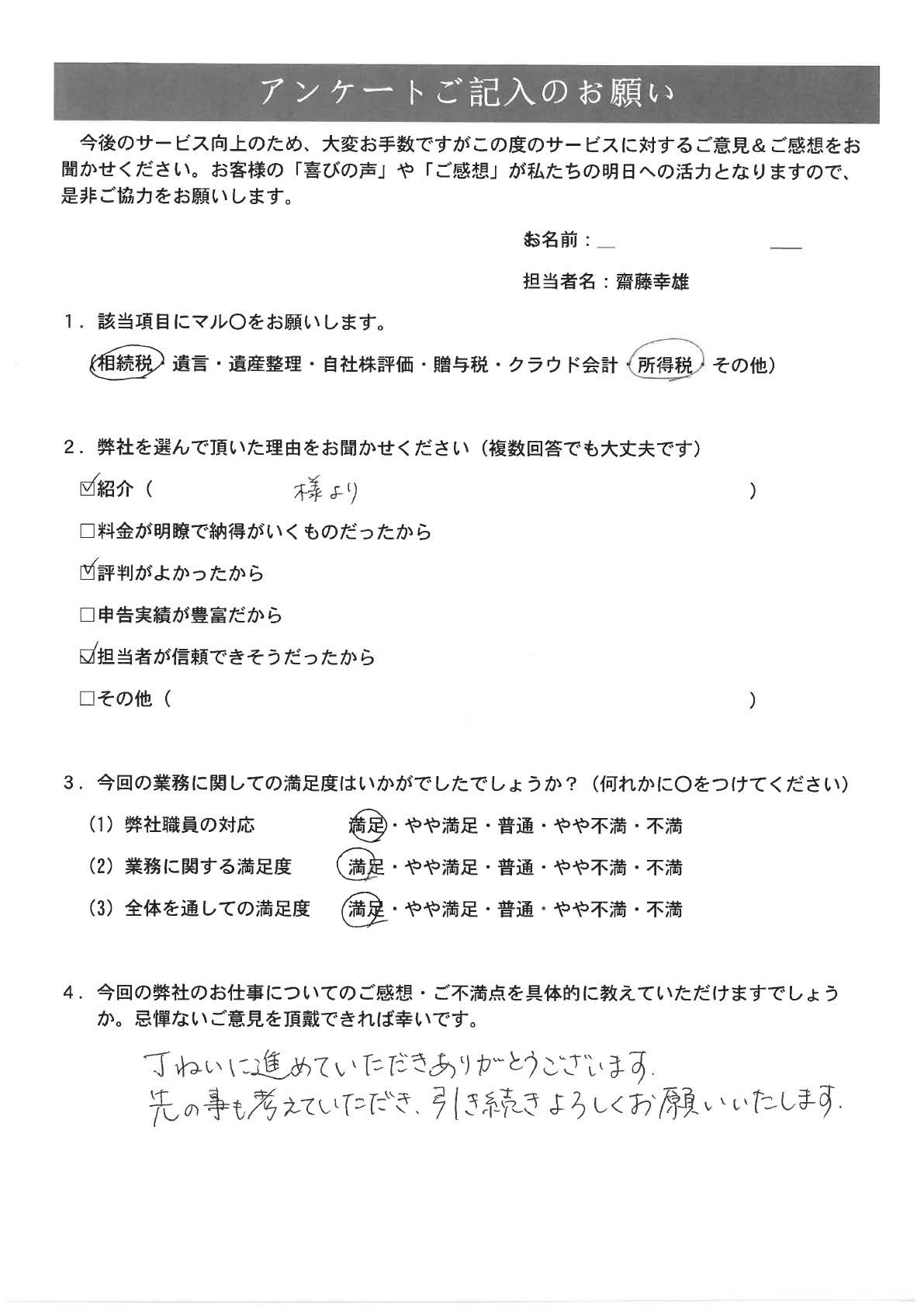 今後とも色々お世話になると思いますが、宜しくお願い致します。齋藤幸雄税理士事務所:齋藤幸雄