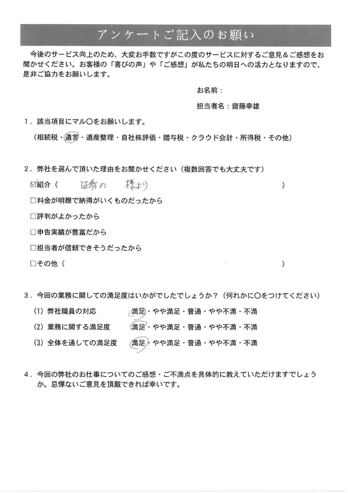 相続の場数ないので他と比較できませんが●●家としては大満足でした。・初回面談時に提示された金額内で納まったこと。